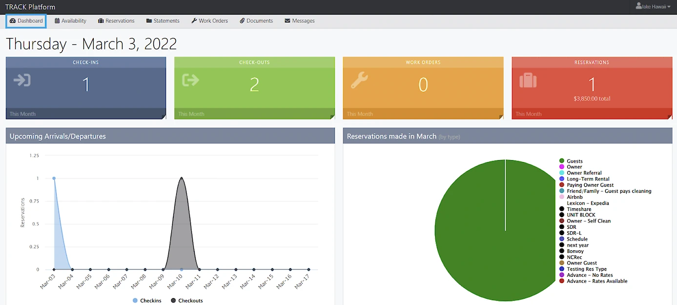When first logging in to the Owner Portal, you will reach your Dashboard. This screen will show you: