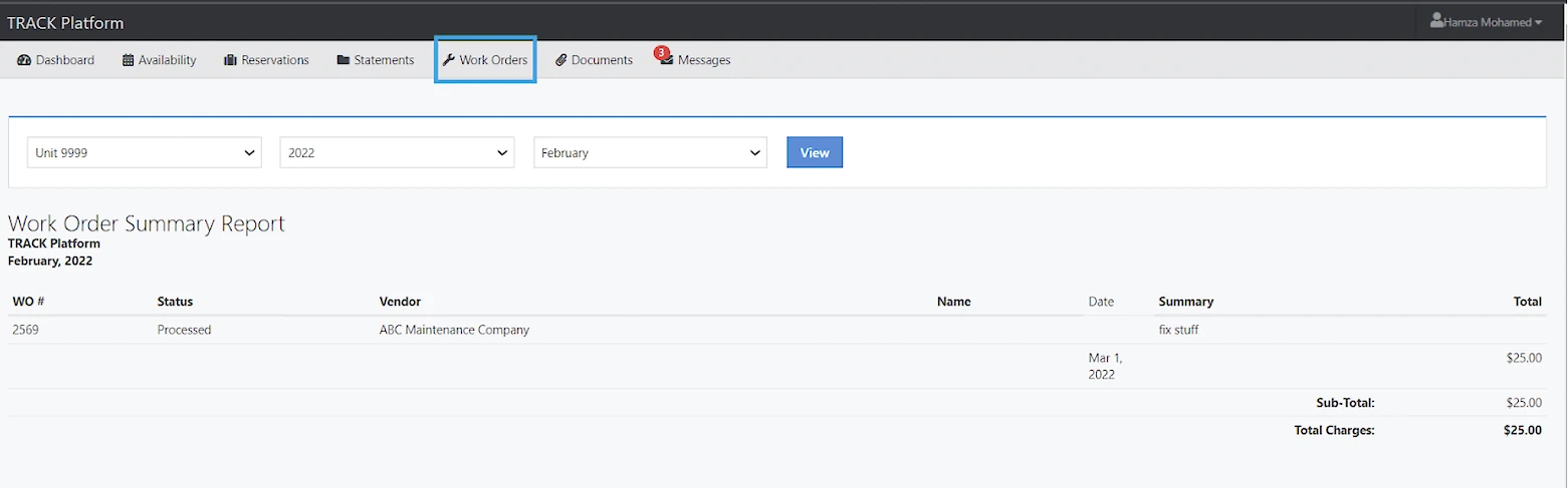 You will be able to see Work Orders that have been completed in your Unit(s), by month, along with any associated charges that you’ve incurred from any of those Work Orders.